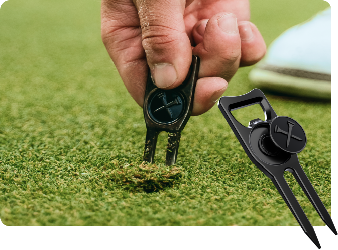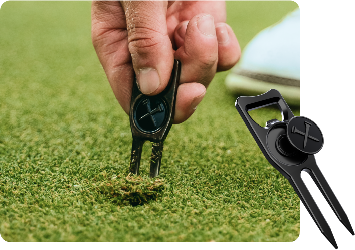 The 6-in-1 Multifunctional Divot Tool was designed to be the ultimate tool for the green. Repair divots, align your putts, open bottles, hold your Blue Tees ball marker, clean out your club grooves, and keep your grips dry.